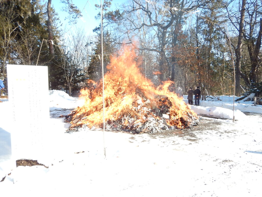 昨年 御守頂いた御神札等と門松や注連飾りを焼納致します同日 御社殿において新年家内安全祈願祭 合格祈願祭が執行されました ご参列者の方々をお祓いします 御札 御守に宿る神様に感謝申し上げる祝詞奏上 忌火を受け お焚き上げが始まります お焚き上げの煙を受けると御神徳が得られます